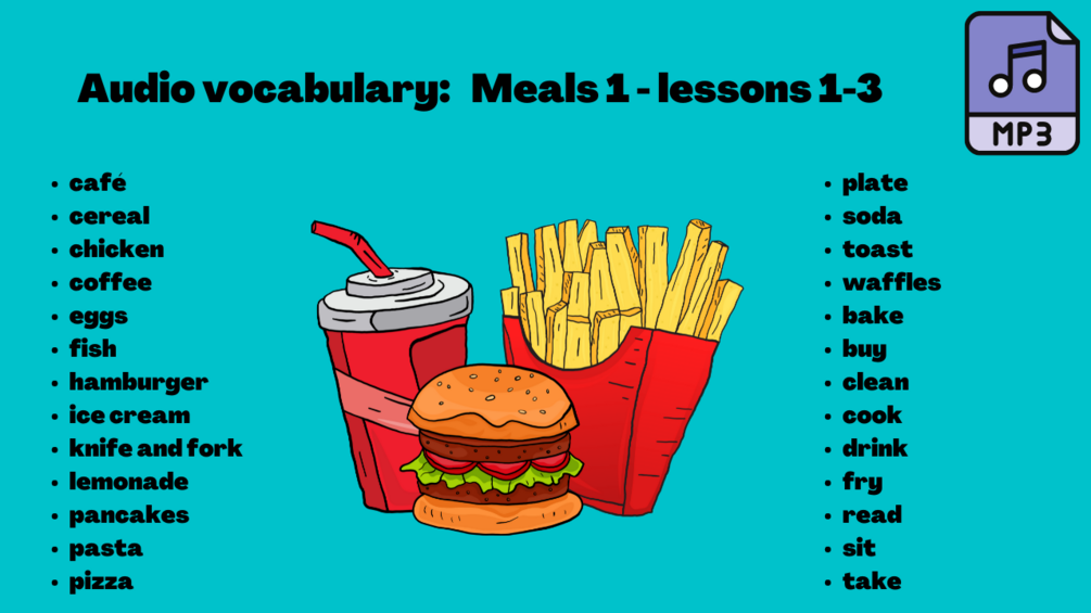 ESL Audio Vocabulary for Meals 1 (26 vocabulary words)