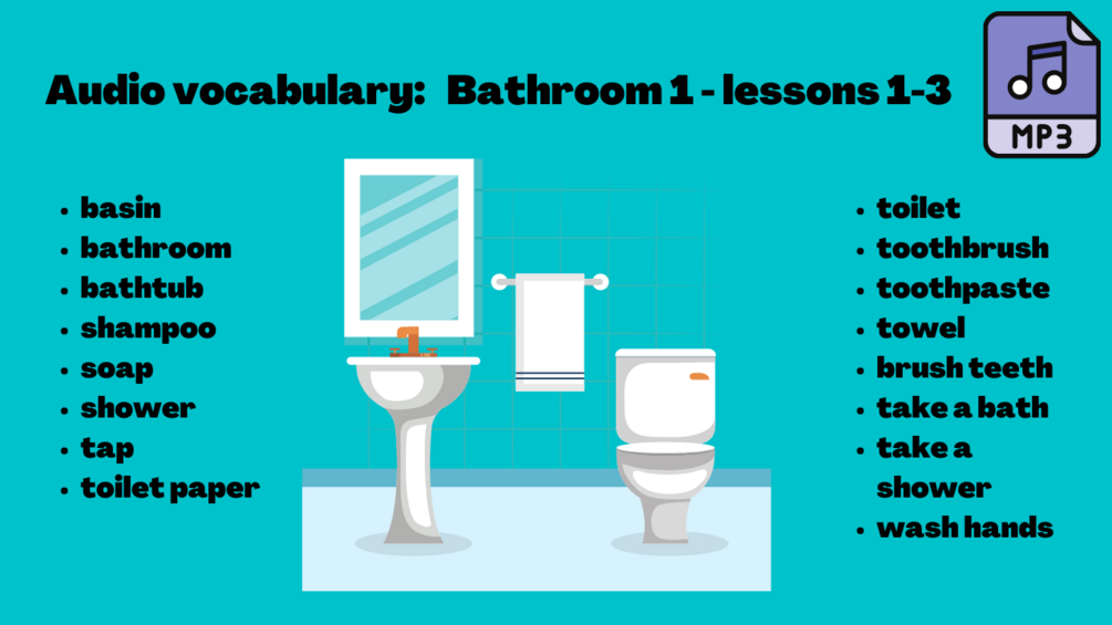 ESL Audio Vocabulary for Bathroom 1 (16 vocabulary words)